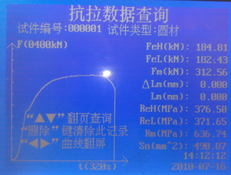 l 電子測力,液晶顯示試驗力時間曲線、試驗力、試驗力峰值、具有明顯屈服特征材料的屈服力;